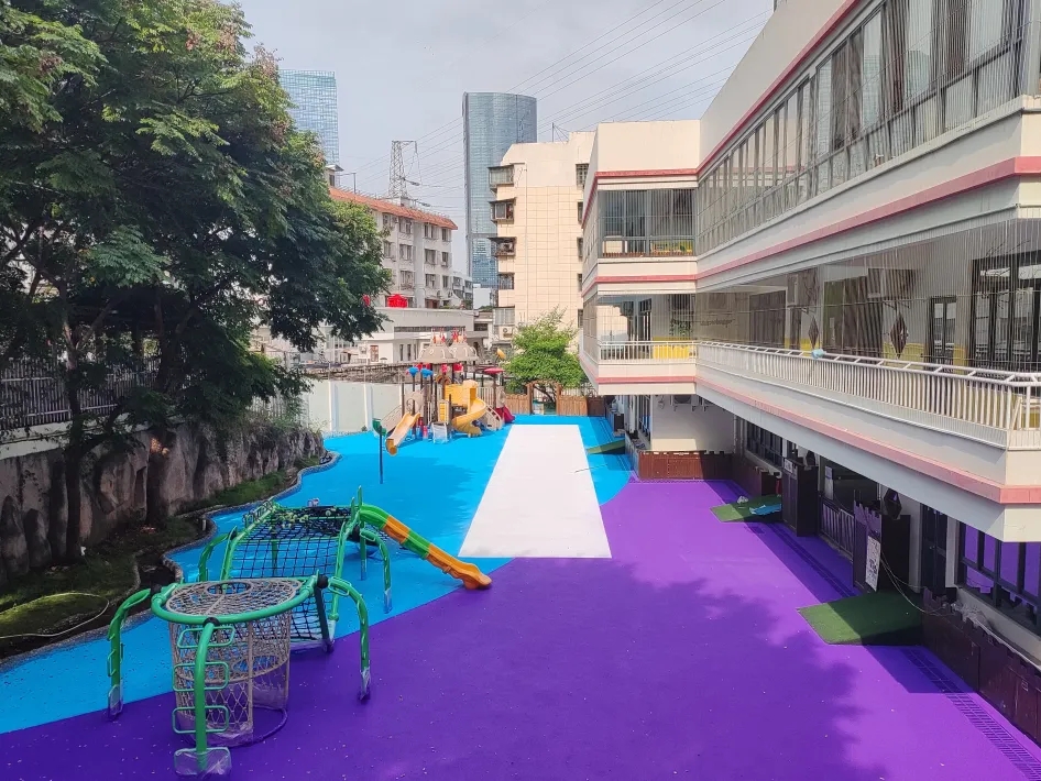 海盛新材专注于幼儿园专用地坪,以“防摔升级+环保无异味”为核心,提供一站式解决方案。其地坪全面满足并超越国家标准:防摔方面,冲击吸收值≥40%(高于国标35%)、防滑系数≥0.6(优于国标0.5),有效减少摔倒伤害;环保方面,确保无甲醛、无重金属,异味消散时间≤48小时(快于国标72小时),不影响正常开园;耐用性上,耐摩擦次数≥25000次(超过国标20000次),适配幼儿高频活动需求。海盛还提供幼儿友好施工(如周末/节假日低噪音作业)、原料透明(进场前园方核对检测报告)以及完善的售后保障(包括1年免费巡检、24小时响应)。选择海盛,可解决地坪防摔、环保、合规等核心痛点,为幼儿园打造安全舒适的活动环境。